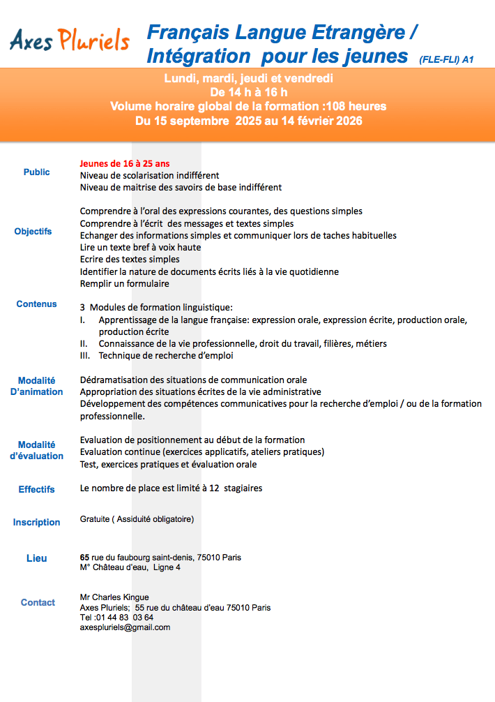 Français langue étrangère / intégration pour les jeunes (FLE-FLI) A1